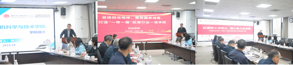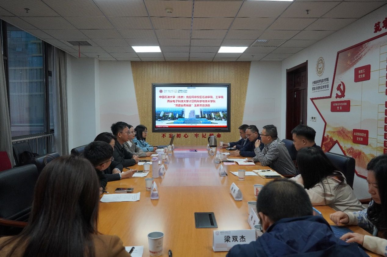 中石大克校区石油学院党委书记田守嶒以《发扬回信精神,服务国家战略,打造“一带一路”能源行业一流学院》为题介绍了石油学院创建学校标杆院系特色做法、打造多元师资队伍、服务新疆九大产业集群、打造应用型人才培养新模式等工作成效;工学院党委书记谢庆宾介绍了工学院全国党建工作样板支部和“双带头人”教师党支部书记工作室建设、多元师资队伍打造、特色优势专业建设、服务石油化工领域国家战略需求开展科学研究等工作情况,均谈到欢迎西电天游ty8线路检测中心网址多多选派优秀教师来到校区,促进青年教师成长,加强双方合作交流。