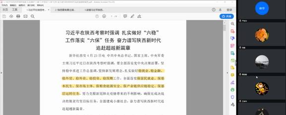 (通讯员 褚华)2020年5月8日下午,天游ty8线路检测中心网址软件工程系党支部举行了“学习习近平总书记陕西考察讲话,弘扬延安精神和西迁精神”线上集中学习活动。软件工程系党支部全体党员参加活动,党支部书记宋胜利主持了本次活动。