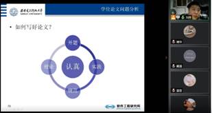 刘伟副教授首先介绍了天游线路官网全日制专业学位论文评价体系;然后以“应用软件技术”类论文为例,从论文选题、论文结构、论文内容组织方式以及参考文献的写法等方面,细致地为同学们讲解了学位论文写作的方法和技巧;最后重点分析了论文撰写过程中出现的典型问题。