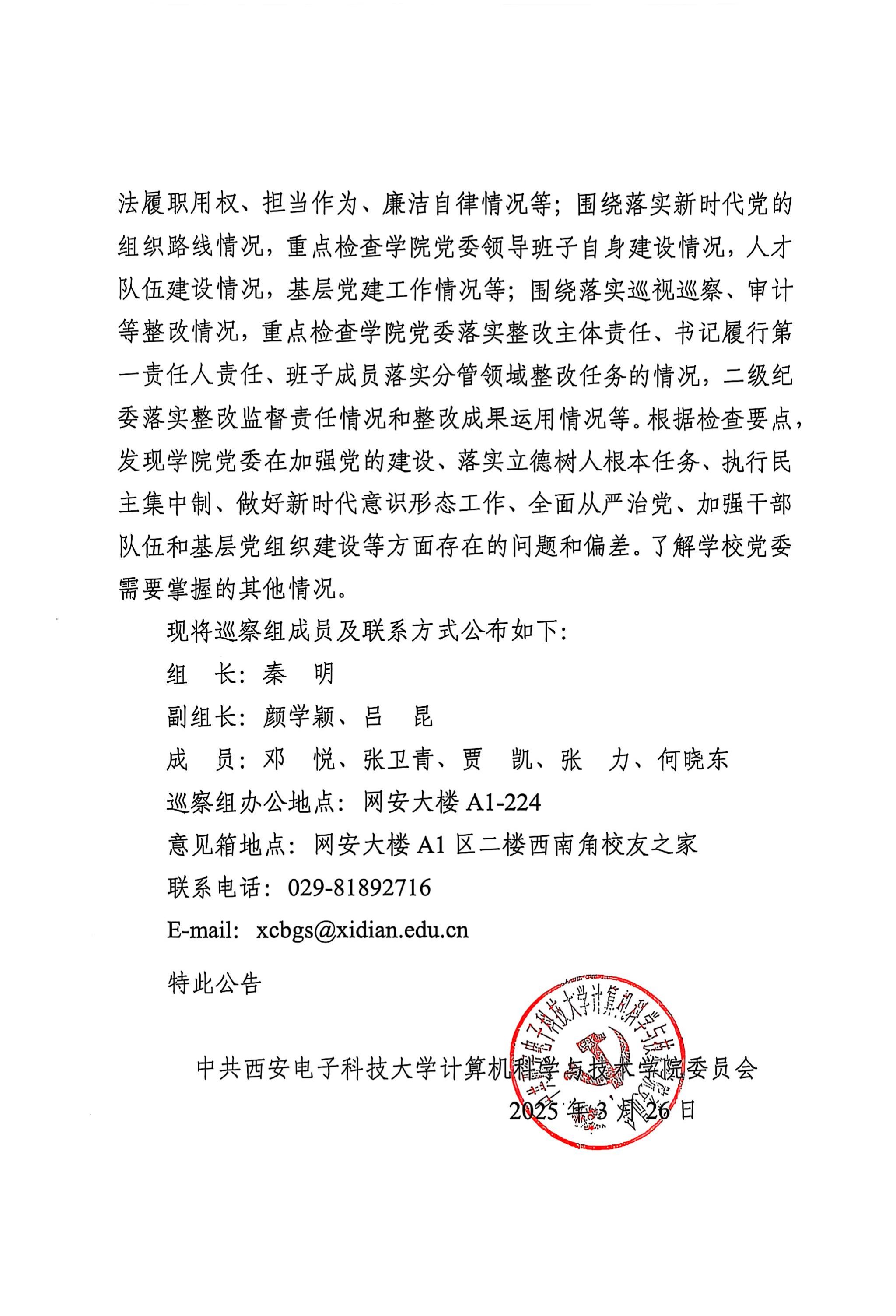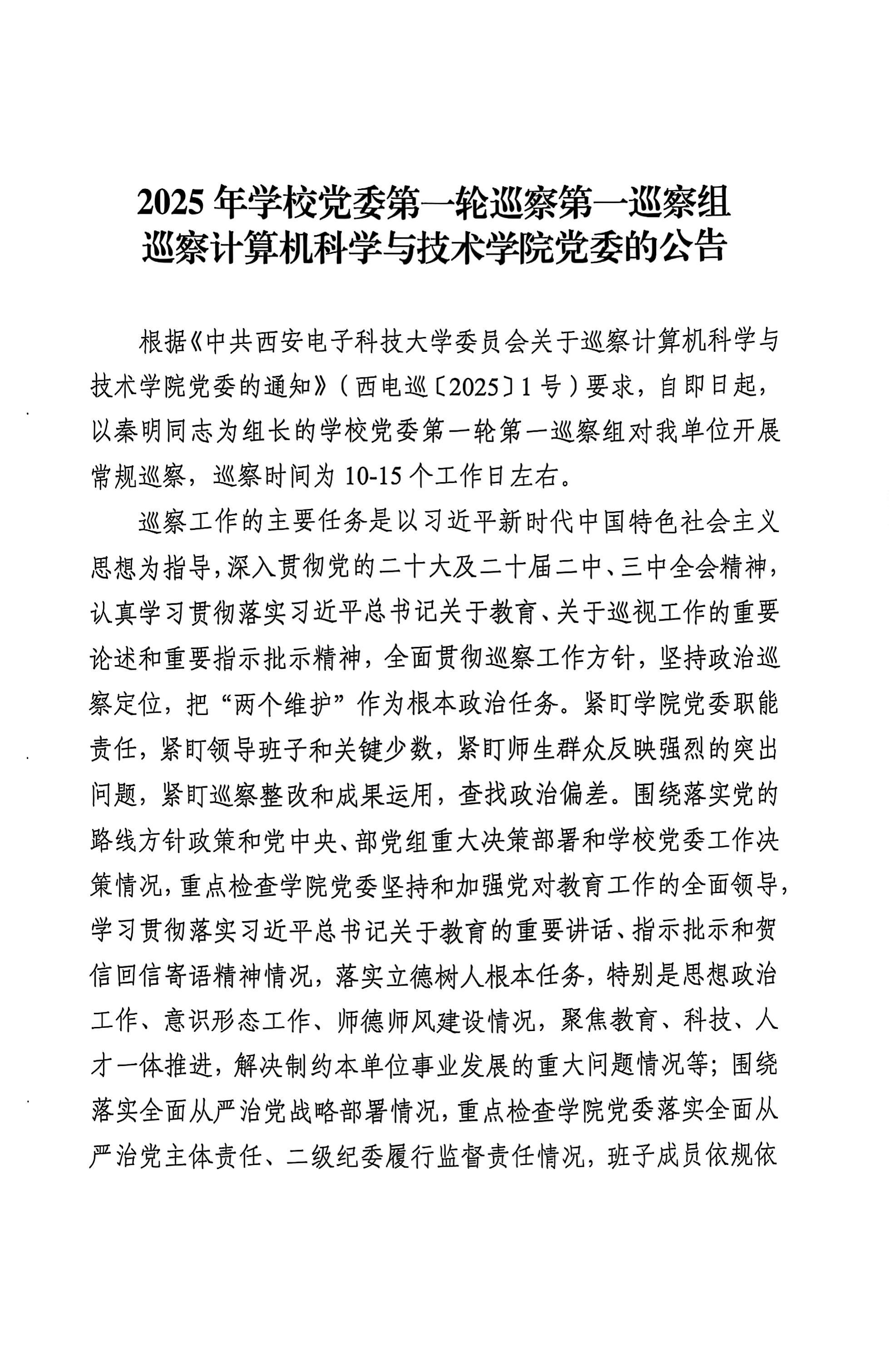 2025年学校党委第一轮巡察第一巡察组巡察天游ty8线路检测中心网址党委的公告