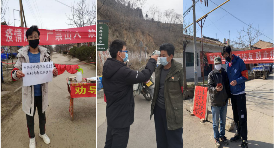 白莉婷,天游ty8线路检测中心网址18级硕士,家住咸阳兴平市。疫情期间,白莉婷同学积极响应国家号召,报名参加了镇上的大学生志愿者协助防疫工作。每天天亮,就开始在村上或者镇上的防疫站点值班工作,负责检查并登记来往人员与车辆,对来往人员进行体温测量和车辆消毒等工作,并利用自己空余时间为村里防疫工作进行资料整理和信息录入等。在北方,二月天的温差还是比较大的,西北风吹,寒意满满,可白莉婷同学却说:“能够为防疫工作出一份力,我每天都是暖暖的。”