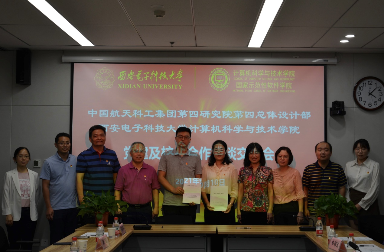 会上,航天科工四院第四总体设计部信息保密联合党支部与西电天游ty8线路检测中心网址计算机网络与物联网研究所本硕博师第一联合党支部启动结对共建。支部书记史阿云、张志为共同签署共建协议。按照协议,两个支部将切实加强联系,通过开展主题党日活动等,共同加强支部建设,推动党建与业务深度融合,服务于人才培养与科研合作。